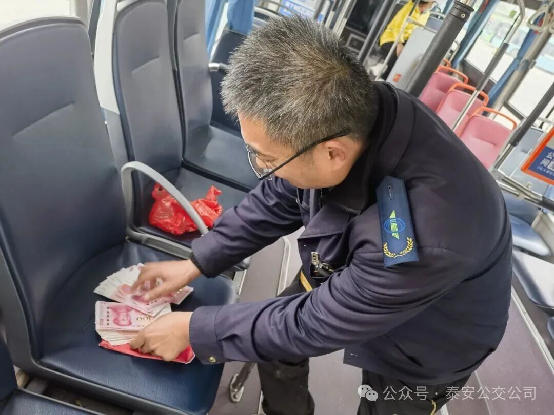 當(dāng)天下午,駕駛員公鵬如往常一般,駕駛魯J08381D號公交車從山東第一醫(yī)科大學(xué)老校站出發(fā),駛向南高新區(qū)公交停車場。14時02分,車輛行至泰山火車站廣場站點時,一名剛上車的乘客在后排座位發(fā)現(xiàn)一個不起眼的紅色塑料袋,打開后竟看到一沓厚厚的百元現(xiàn)金。