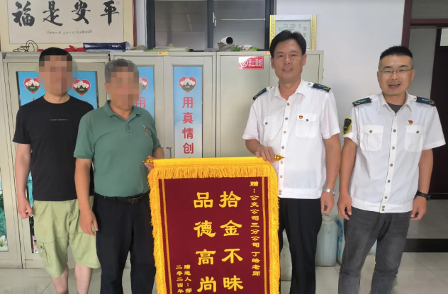 “金杯銀杯,不如乘客的口碑”。近日,泰城市民邢先生與家人一起將一面寫有“拾金不昧 品德高尚”的錦旗送到市公交公司第三分公司辦公室,對撿到他錢包的67路公交車駕駛員丁皞表示感謝,并對公交駕駛員拾金不昧的高尚品行大加贊賞。