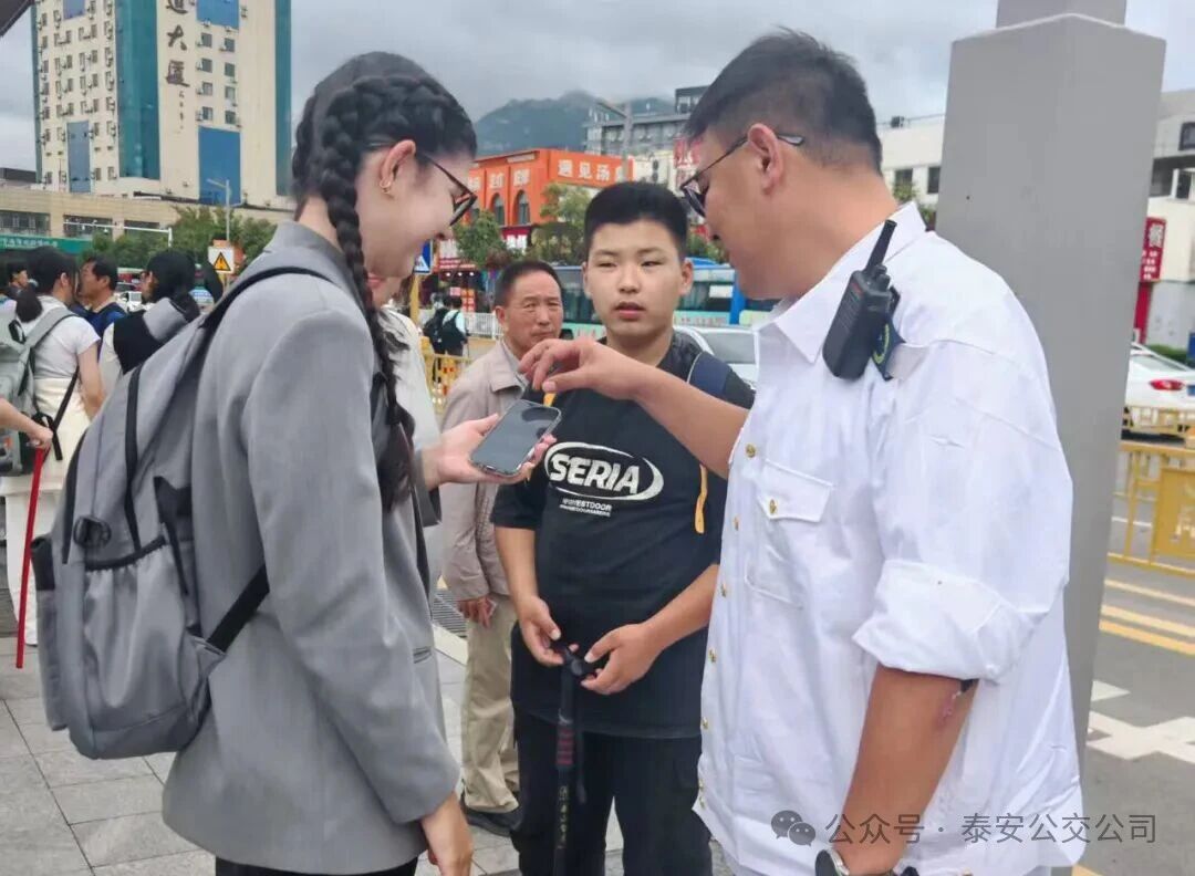國慶假期的泰山火車站,人流熙攘間滿是出行的活力。10月3日上午10時(shí)許,泰安公交第二分公司副經(jīng)理尹燕群正堅(jiān)守在執(zhí)勤崗位上,疏導(dǎo)客流、解答疑問、維護(hù)秩序。就在這時(shí),一位在公交站牌旁面露難色的外籍游客,引起了他的注意。