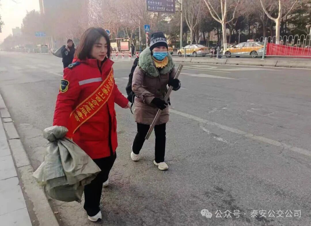在小井公交樞紐附設(shè)站,身著紅色“泰山百合”馬甲、佩戴志愿服務(wù)綬帶的志愿者們迅速投入工作,有序開展便民服務(wù)。在公交車停靠區(qū)域,志愿者主動(dòng)引導(dǎo)駕駛員規(guī)范進(jìn)站、有序??浚U宪囕v進(jìn)出站安全順暢;在候車區(qū)域,志愿者們耐心解答乘客出行咨詢,重點(diǎn)關(guān)注老年乘客等特殊群體,主動(dòng)攙扶其上下車,細(xì)致講解上下車安全、扶手抓握、特殊天氣防護(hù)等乘車攻略。同時(shí),志愿者們向過往市民發(fā)放綠色公交出行宣傳冊(cè),積極倡導(dǎo)低碳環(huán)保、文明出行理念,為有換乘需求的乘客精準(zhǔn)規(guī)劃最優(yōu)路線,用貼心指引讓寒冷冬日充滿溫情。